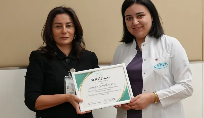 Главврач Кёнюль Халилова и представители медицинского коллектива вручили сертификаты выпускникам, подчеркнув важность их вклада в будущее медицины.